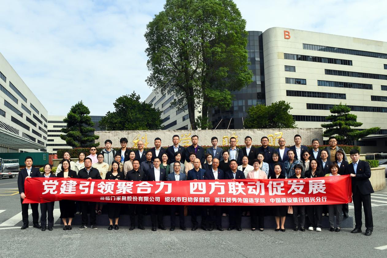 2025年10月28日,浙江越秀外国语学院党委联合喜临门家具股份有限公司党委、绍兴市妇幼保健院党委、建设银行绍兴分行党委在喜临门家具股份有限公司袍江厂区开展“党建引领聚合力 四方联动促发展”党建共建活动。学校特聘教授费君清、党委副书记高琴波、数字贸易学院党委书记王庆军、学校财务处处长王星、党政办副主任盛林斌及数贸学院师生党员代表参加此次活动。