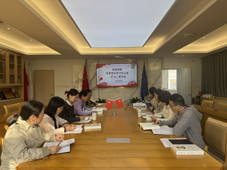 10月29日,英语学院党委召开理论学习中心组(扩大)学习会,学习《习近平谈治国理政》第五卷,党的二十届四中全会精神,师德师风建设的相关要求等。学院党委理论学习中心组成员和各支部书记参加,学习会由李敏书记主持。